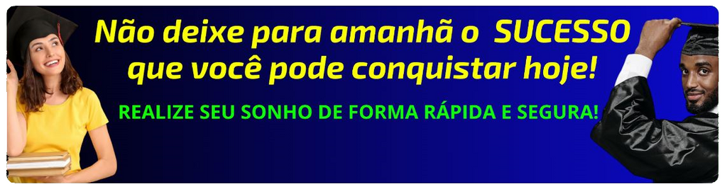 Ao final do curso, você receberá um Certificado reconhecido pelo MEC e também o Histórico Escolar, válido em todo o território nacional, podendo cursar faculdade ou cursos técnicos, prestar concursos públicos, buscar novas oportunidades no mercado de trabalho, concorrer à promoção em seu emprego ou realizar o sonho de concluir os estudos.